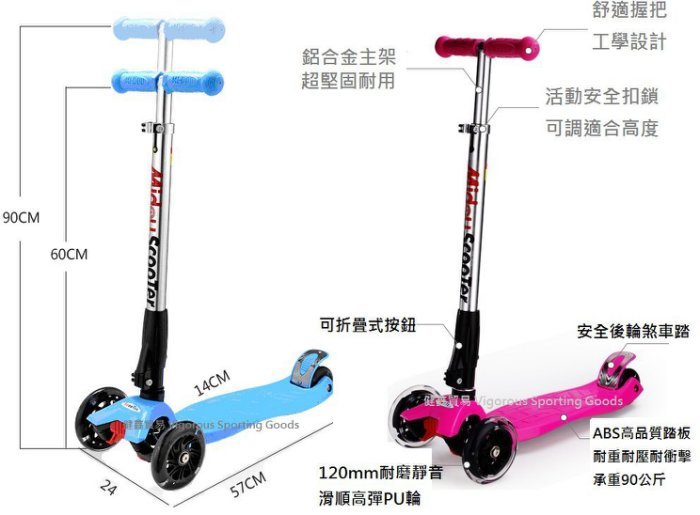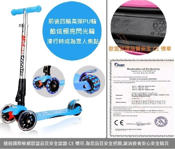 品名:風靡歐美SCOTTER兒童四輪滑板車(可調高度可折疊)二代升級頂級豪華款